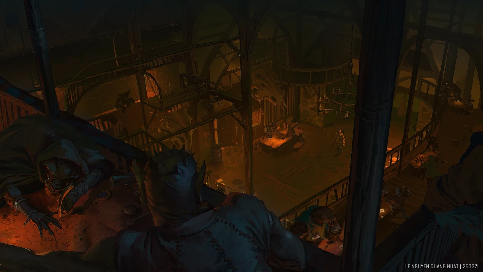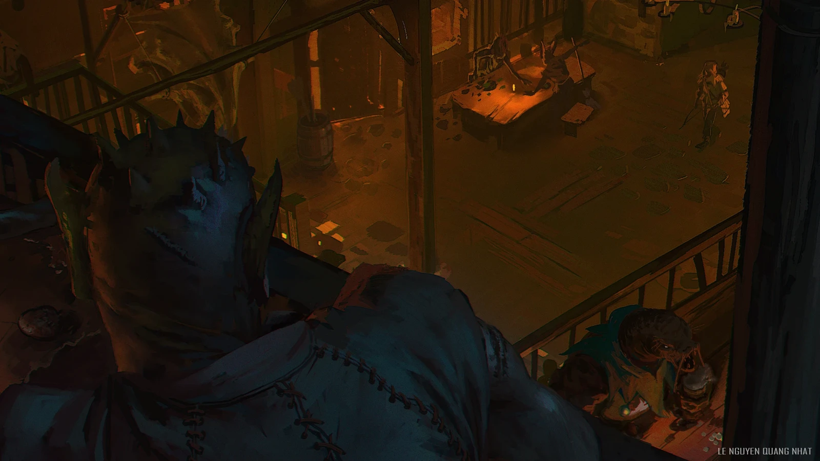 - He walks inside the tavern, and people are looking at him because he is not from around here. Tho two shady guys are working on something on the third floor noticed him and then tried to wrap things up. Ya guys enjoy!